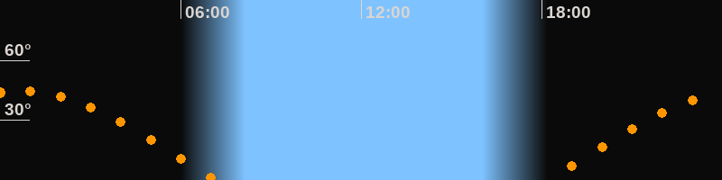 | Aufgang | 18:10 Uhr im Osten (αAz = 80,7°) |