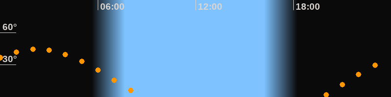 | Aufgang | 19:41 Uhr im Osten (αAz = 80,7°) |