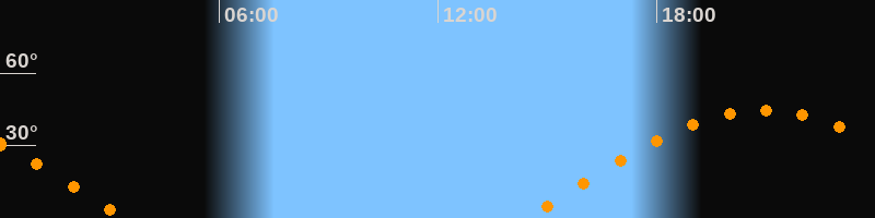 | Aufgang | 14:24 Uhr im Osten (αAz = 80,7°) |
