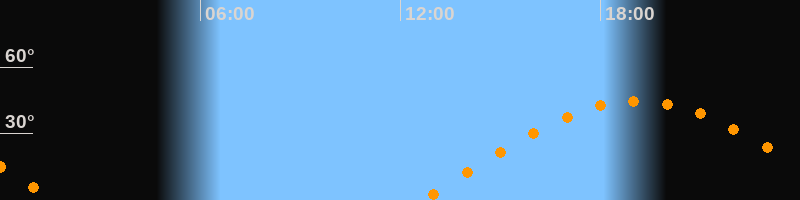| Höchster Stand (Kulmination) | 19:07 Uhr (h = 44,7°) |