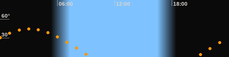 | Höchster Stand (Kulmination) | 03:04 Uhr (h = 44,7°) |