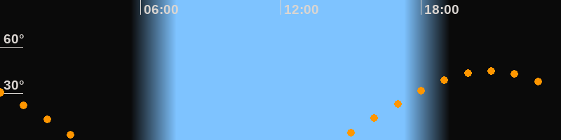 | Aufgang | 14:25 Uhr im Osten (αAz = 80,7°) |