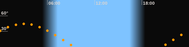 | Höchster Stand (Kulmination) | 03:00 Uhr (h = 44,7°) |
