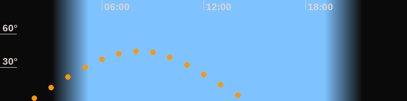 | Höchster Stand (Kulmination) | 08:08 Uhr (h = 44,7°) |
