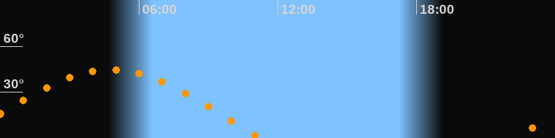 | Höchster Stand (Kulmination) | 04:45 Uhr (h = 44,7°) |