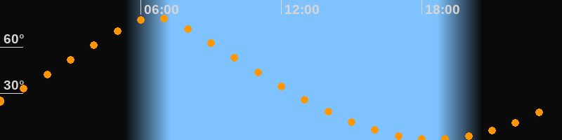 | Höchster Stand (Kulmination) | 06:34 Uhr (h = 79,1°) |