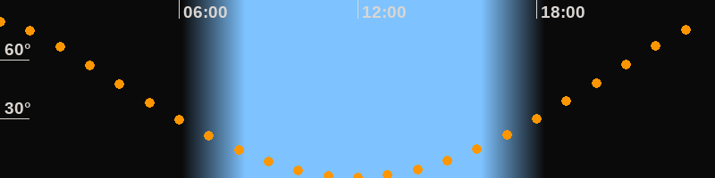 Höchster Stand (Kulmination)23:55 Uhr (h = 79,1°)