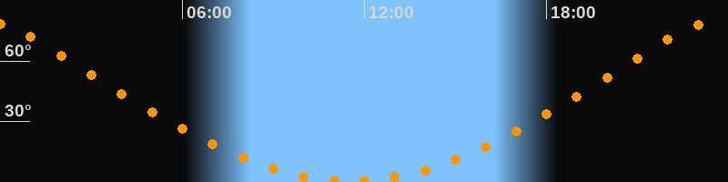 Höchster Stand (Kulmination)23:32 Uhr (h = 79,1°)