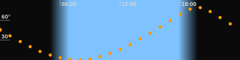 Höchster Stand (Kulmination)19:44 Uhr (h = 79,1°)