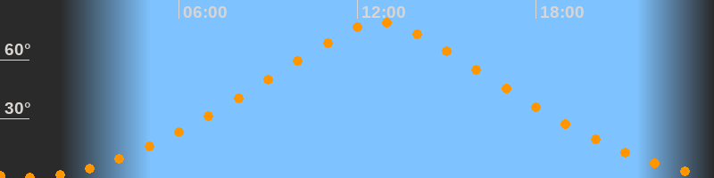 | Höchster Stand (Kulmination) | 12:45 Uhr (h = 79,1°) |