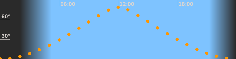 | Höchster Stand (Kulmination) | 12:02 Uhr (h = 79,1°) |