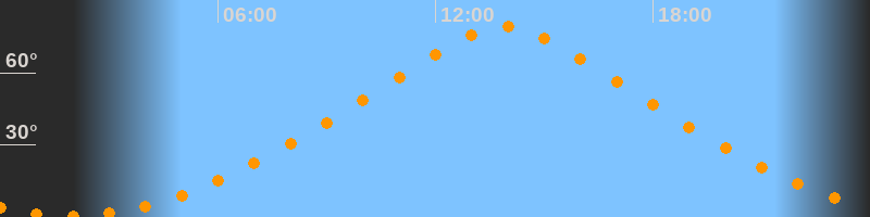 | Höchster Stand (Kulmination) | 13:54 Uhr (h = 79,1°) |
