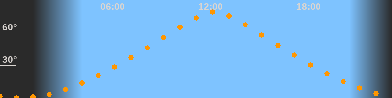 | Höchster Stand (Kulmination) | 13:07 Uhr (h = 79,1°) |