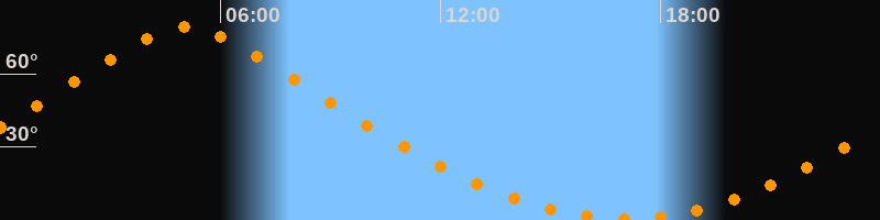 | Höchster Stand (Kulmination) | 05:03 Uhr (h = 79,1°) |