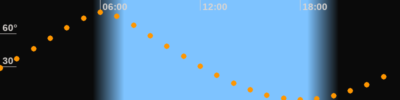 | Höchster Stand (Kulmination) | 06:07 Uhr (h = 79,1°) |