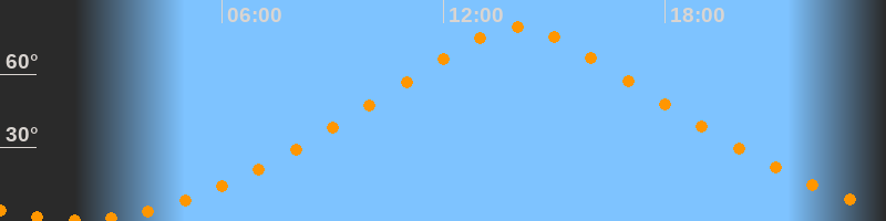 | Höchster Stand (Kulmination) | 14:01 Uhr (h = 79,1°) |