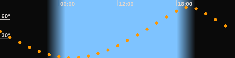 | Höchster Stand (Kulmination) | 19:16 Uhr (h = 79,1°) |
