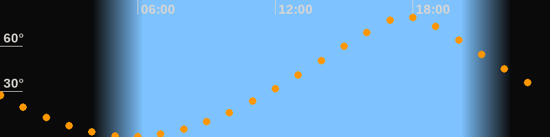 | Höchster Stand (Kulmination) | 17:43 Uhr (h = 79,1°) |