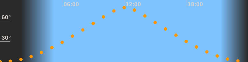 | Höchster Stand (Kulmination) | 12:04 Uhr (h = 79,1°) |