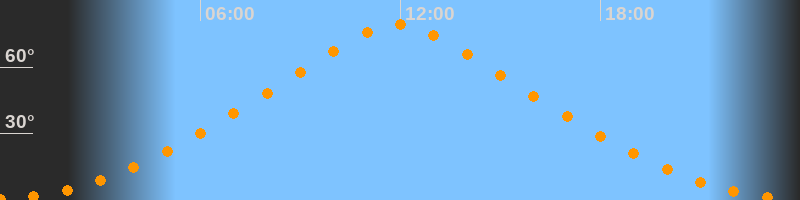 | Höchster Stand (Kulmination) | 11:55 Uhr (h = 79,1°) |