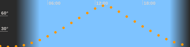 | Höchster Stand (Kulmination) | 13:08 Uhr (h = 79,1°) |