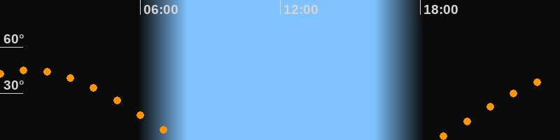 | Aufgang | 18:39 Uhr im Osten (αAz = 79,8°) |
