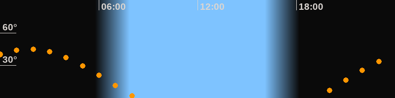 | Aufgang | 19:10 Uhr im Osten (αAz = 79,8°) |