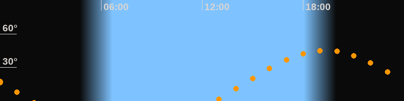 | Aufgang | 12:46 Uhr im Osten (αAz = 79,8°) |