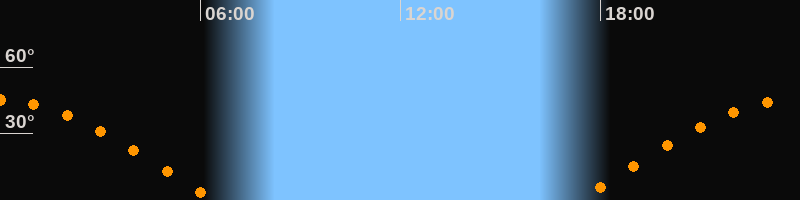 | Aufgang | 17:18 Uhr im Osten (αAz = 79,8°) |