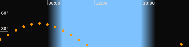 | Aufgang | 22:21 Uhr im Osten (αAz = 79,8°) |