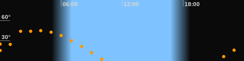 | Untergang | 10:22 Uhr im Westen (αAz = 280,2°) |