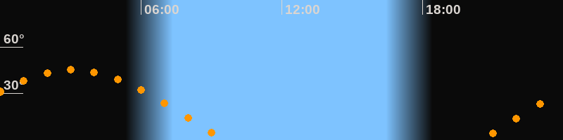 | Höchster Stand (Kulmination) | 03:03 Uhr (h = 45,3°) |