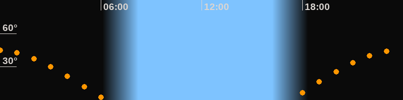 | Aufgang | 17:12 Uhr im Osten (αAz = 79,8°) |