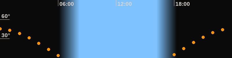 | Aufgang | 17:21 Uhr im Osten (αAz = 79,8°) |