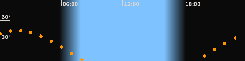 | Aufgang | 19:07 Uhr im Osten (αAz = 79,8°) |