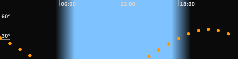 | Aufgang | 14:28 Uhr im Osten (αAz = 79,8°) |