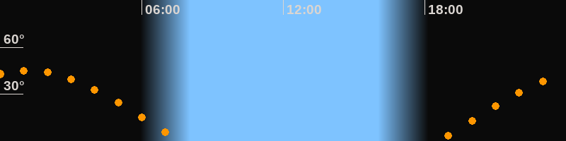 | Aufgang | 18:33 Uhr im Osten (αAz = 79,8°) |
