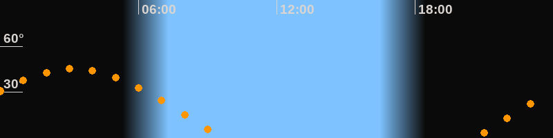 | Höchster Stand (Kulmination) | 03:09 Uhr (h = 45,3°) |
