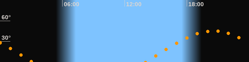 | Aufgang | 14:00 Uhr im Osten (αAz = 79,8°) |