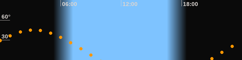 | Höchster Stand (Kulmination) | 03:19 Uhr (h = 45,3°) |