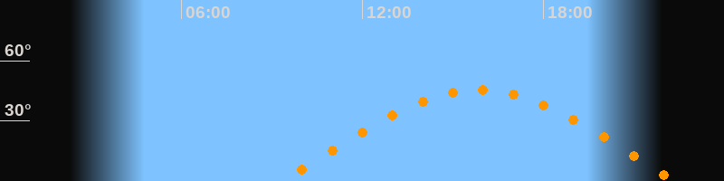 | Aufgang | 09:19 Uhr im Osten (αAz = 79,8°) |