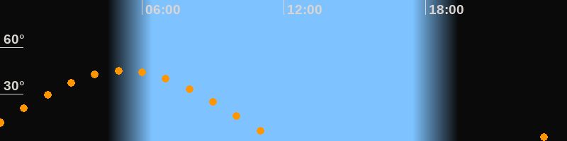 | Untergang | 11:46 Uhr im Westen (αAz = 280,2°) |