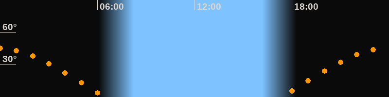 | Aufgang | 17:20 Uhr im Osten (αAz = 79,8°) |