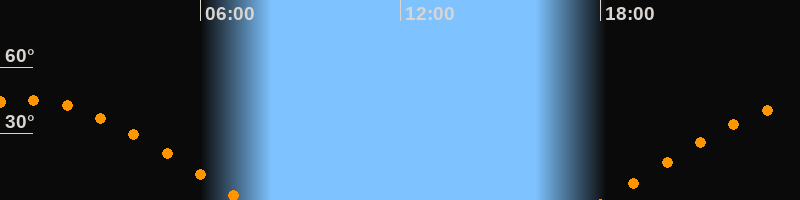 | Aufgang | 18:08 Uhr im Osten (αAz = 79,8°) |
