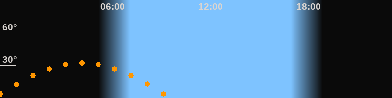 | Höchster Stand (Kulmination) | 05:01 Uhr (h = 32,6°) |