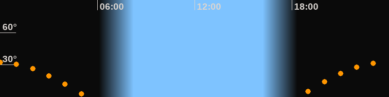 | Aufgang | 18:20 Uhr im Osten (αAz = 99,9°) |