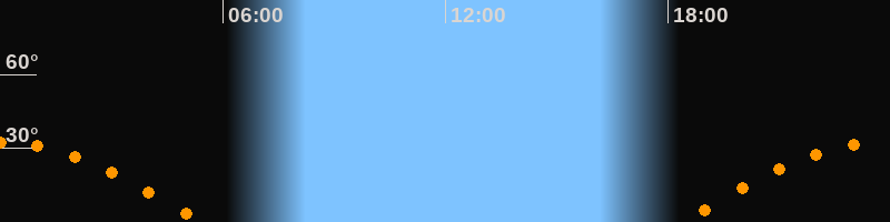 | Aufgang | 18:23 Uhr im Osten (αAz = 99,9°) |