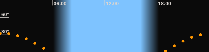 | Höchster Stand (Kulmination) | 00:14 Uhr (h = 32,6°) |