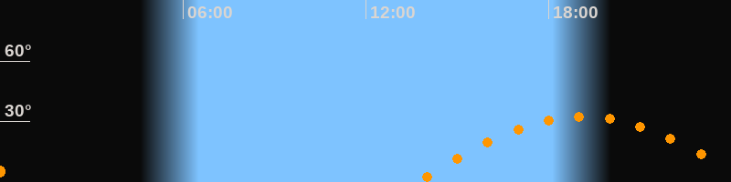 | Höchster Stand (Kulmination) | 19:07 Uhr (h = 32,6°) |