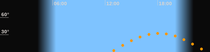 | Höchster Stand (Kulmination) | 18:08 Uhr (h = 32,6°) |